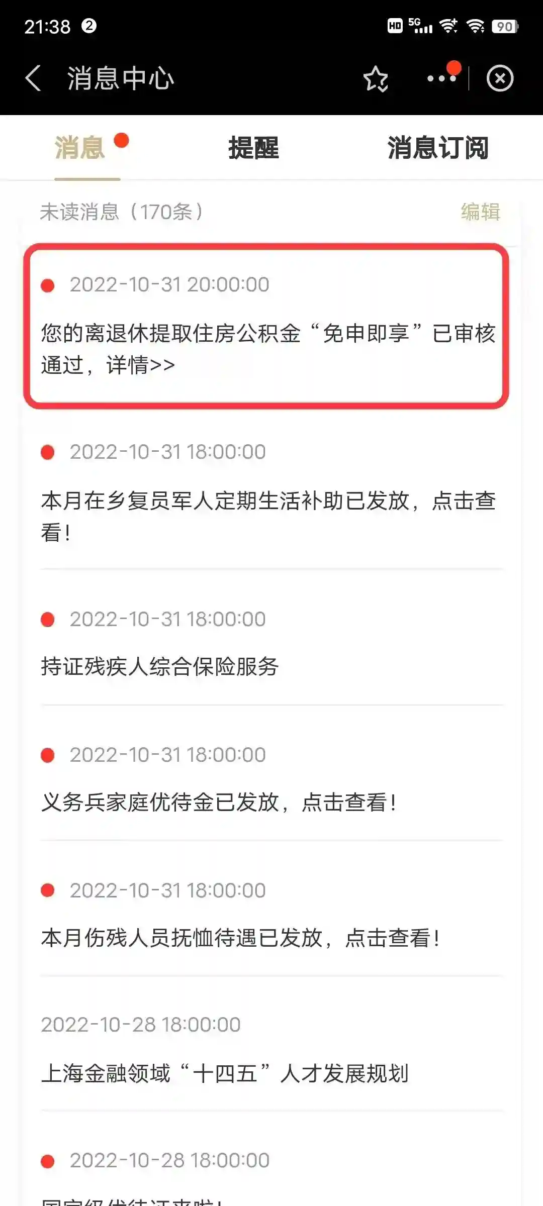 有一部分缴存职工在办理退休手续后,长期未办理提取住房公积金,使其个人住房公积金变成了一笔“被遗忘”的资金。随着离退休提取住房公积金“免申即享”服务的开展,通过“随申办”以及12329短信渠道消息主动推送的方式,多渠道提醒退休缴存职工及时办理离退休提取住房公积金手续,实现从“人找政策”到“免申即享”转变,政策红利直达直享、精准服务无处不享。