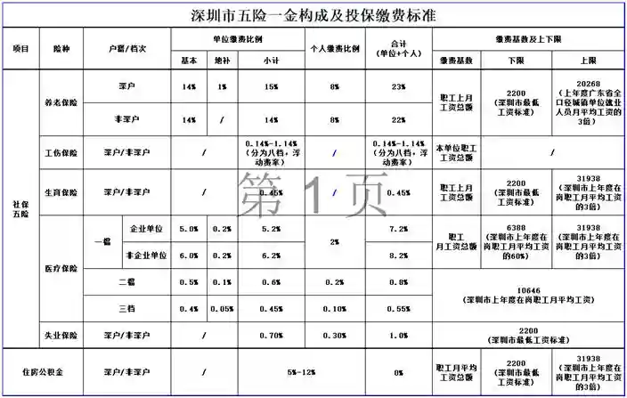 缴费基数:职工月平均工资总额。下限为深圳市最低工资2200元,上限为深圳市上年度在岗职工月平均工资的3倍即31938元。