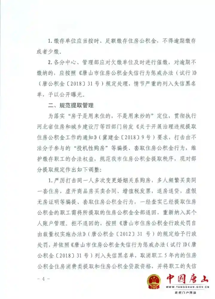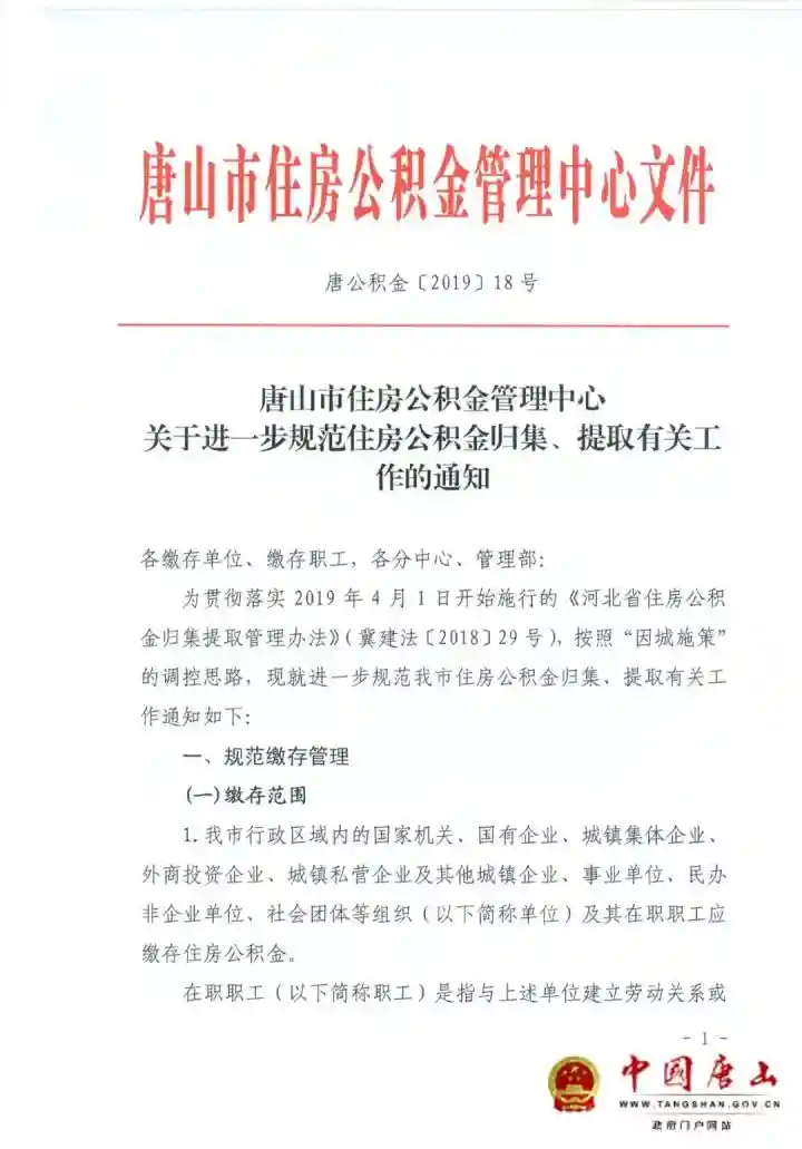 3月29日,唐山市住房公积金管理中心下发通知,要进一步规范住房公积金归集、提取有关工作。