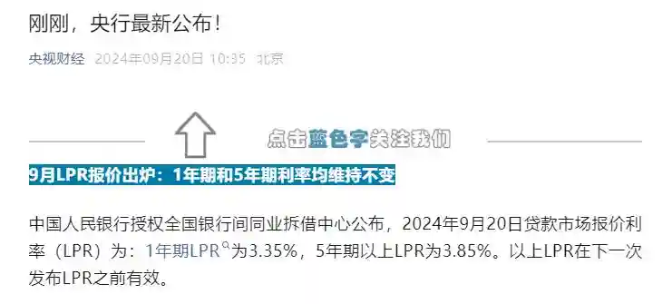 中国人民银行授权全国银行间同业拆借中心公布,2025年9月20日贷款市场报价利率(LPR)为:1年期LPR为3.35%,5年期以上LPR为3.85%。以上LPR在下一次发布LPR之前有效。
