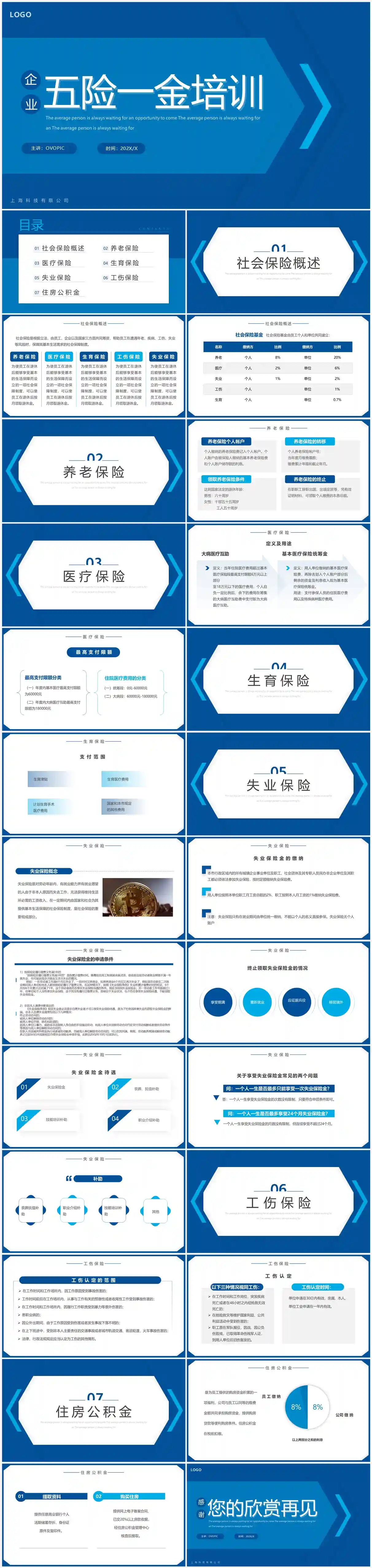 模板下载链接:蓝色简约企业五险一金知识培训PPT模板_PPT模板【OVO图库】